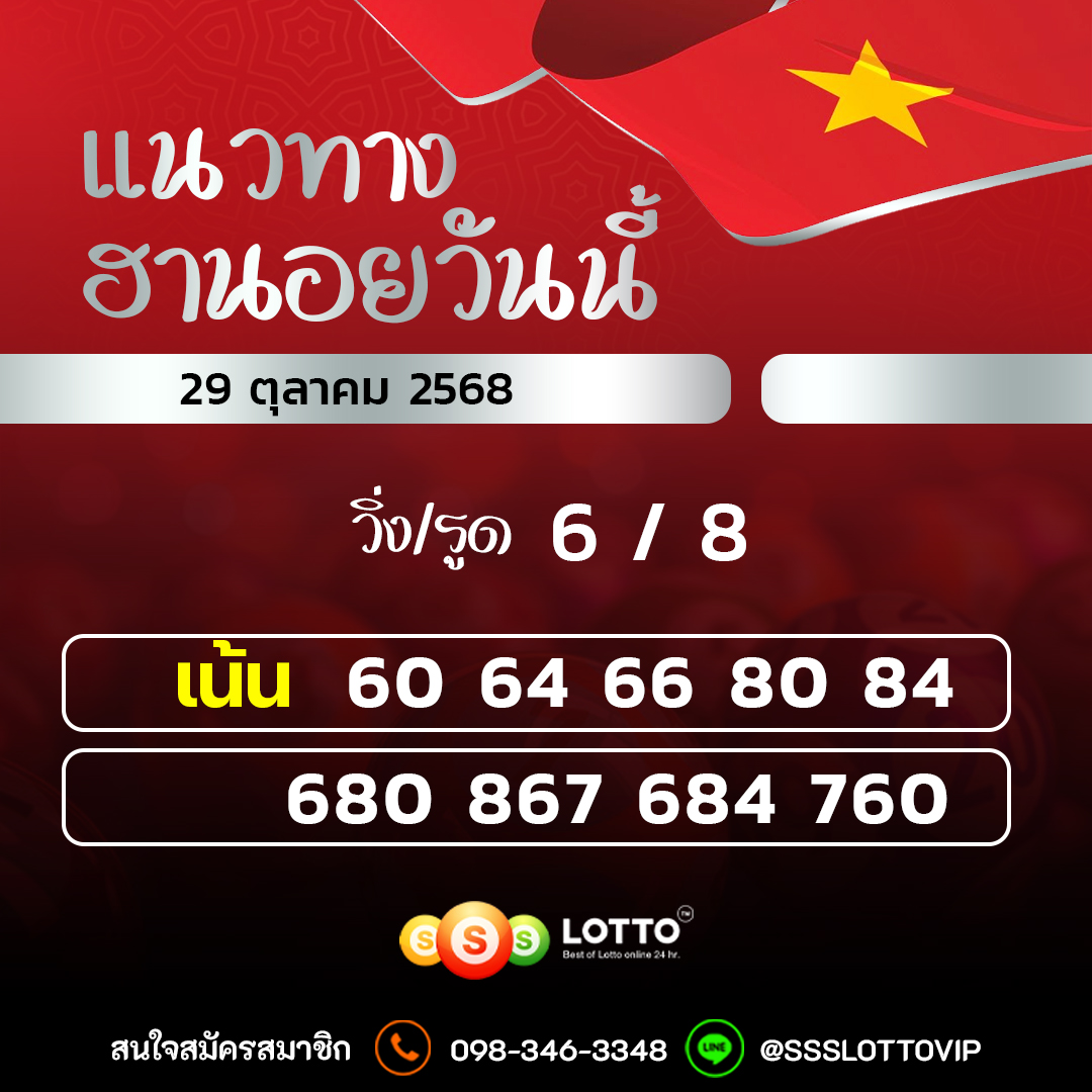 แนวทางหวยฮานอย 29/10/2568 วันนี้แม่นๆ แนวทางหวยออนไลน์ล่าสุด เว็บนี้ไม่มีโกง เเทงหวย หวยออนไลน์ Ssslotto