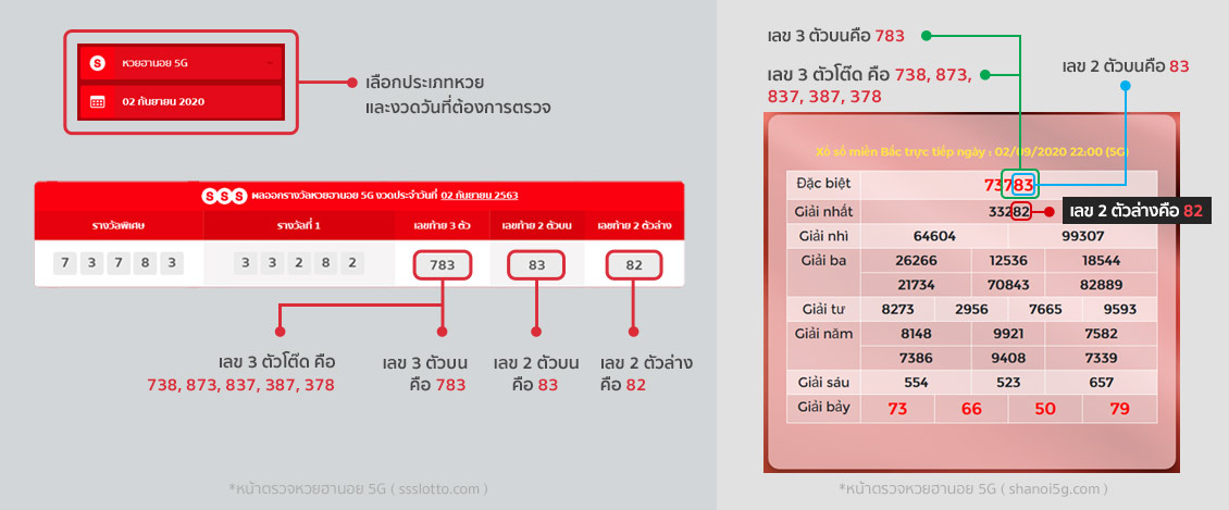 ตรวจหวยฮานอย 5G สามารถเข้าไปตรวจออนไลน์ได้ที่เว็บไซต์ https://www.shanoi5g.com หรือจะดูที่หน้าเว็บไซต์ ssslotto.com ก็ได้เช่นกัน วิธีตรวจรางวัลหวยแบบต่างๆ สามารถดูได้จากตัวอย่างด้านล่างนี้